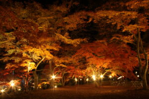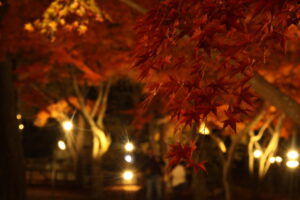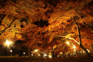 特に紅葉シーズンには、荒川沿いの静かな流れと色づいた木々が織りなす景観が訪れる人々を魅了します。夜間にはライトアップイベントも行われ、昼間とは異なる幻想的な雰囲気を楽しむことができます。