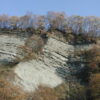 「お船岩」は、秩父町層群奈倉層の砂岩が浸食され、北北東に突出した断崖です。懸崖(けんがい)造りの観音堂も砂岩の上にあります。