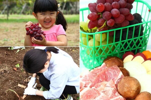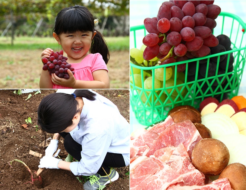 イチゴやブドウ狩りだけじゃなく芋掘り、魚のつかみどりもでき楽しめます。