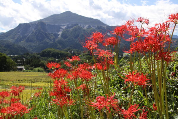 県内最大級の棚田で武甲山を背景に黄金の稲穂、畦に咲く約200万球の朱色の彼岸花。はぜ掛け、秋の虫の鳴き声、棚田のノンビリとした風景を楽しんで頂けます。