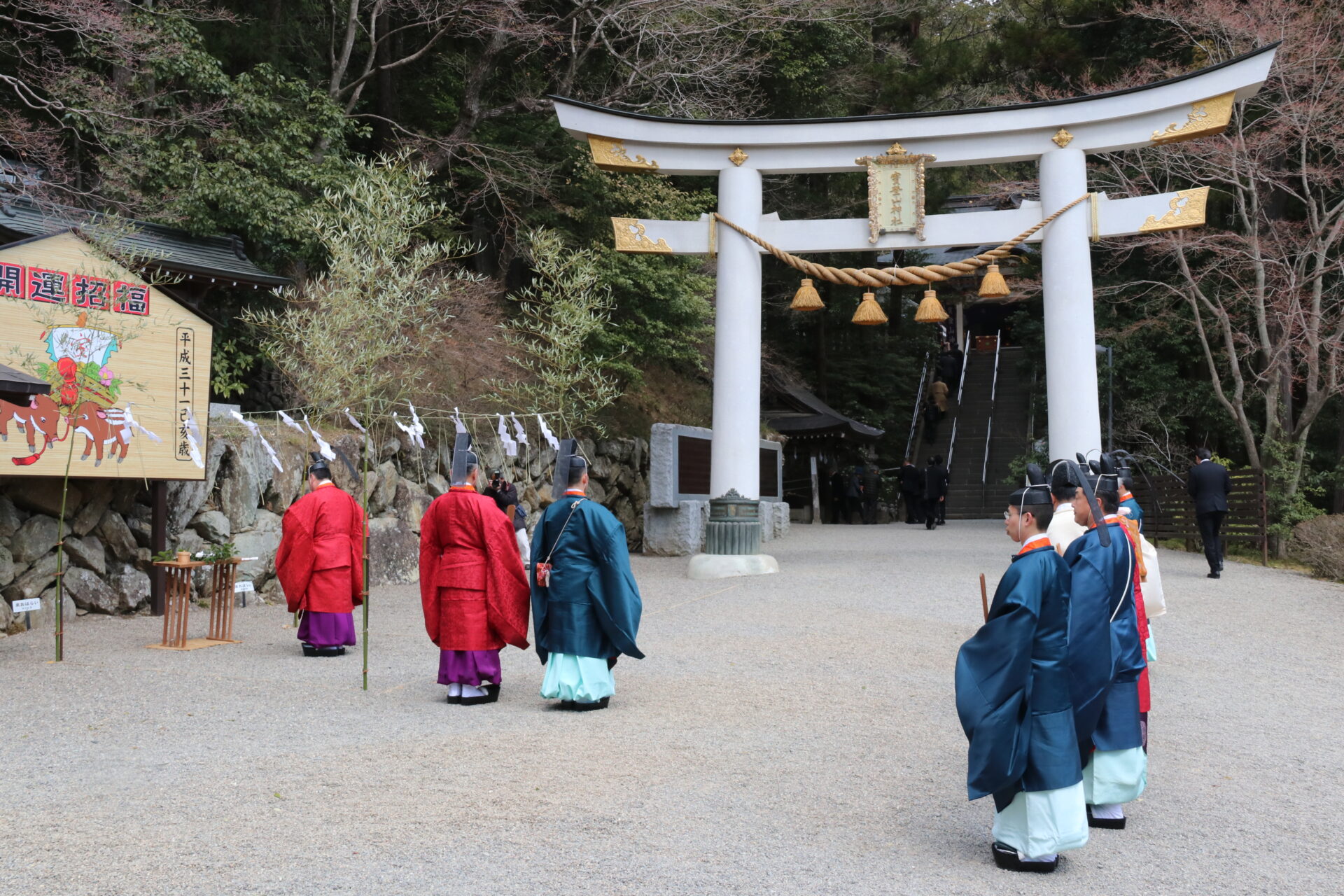 境内には多くの参拝者が訪れ、厳かな雰囲気の中で神事が進められます。