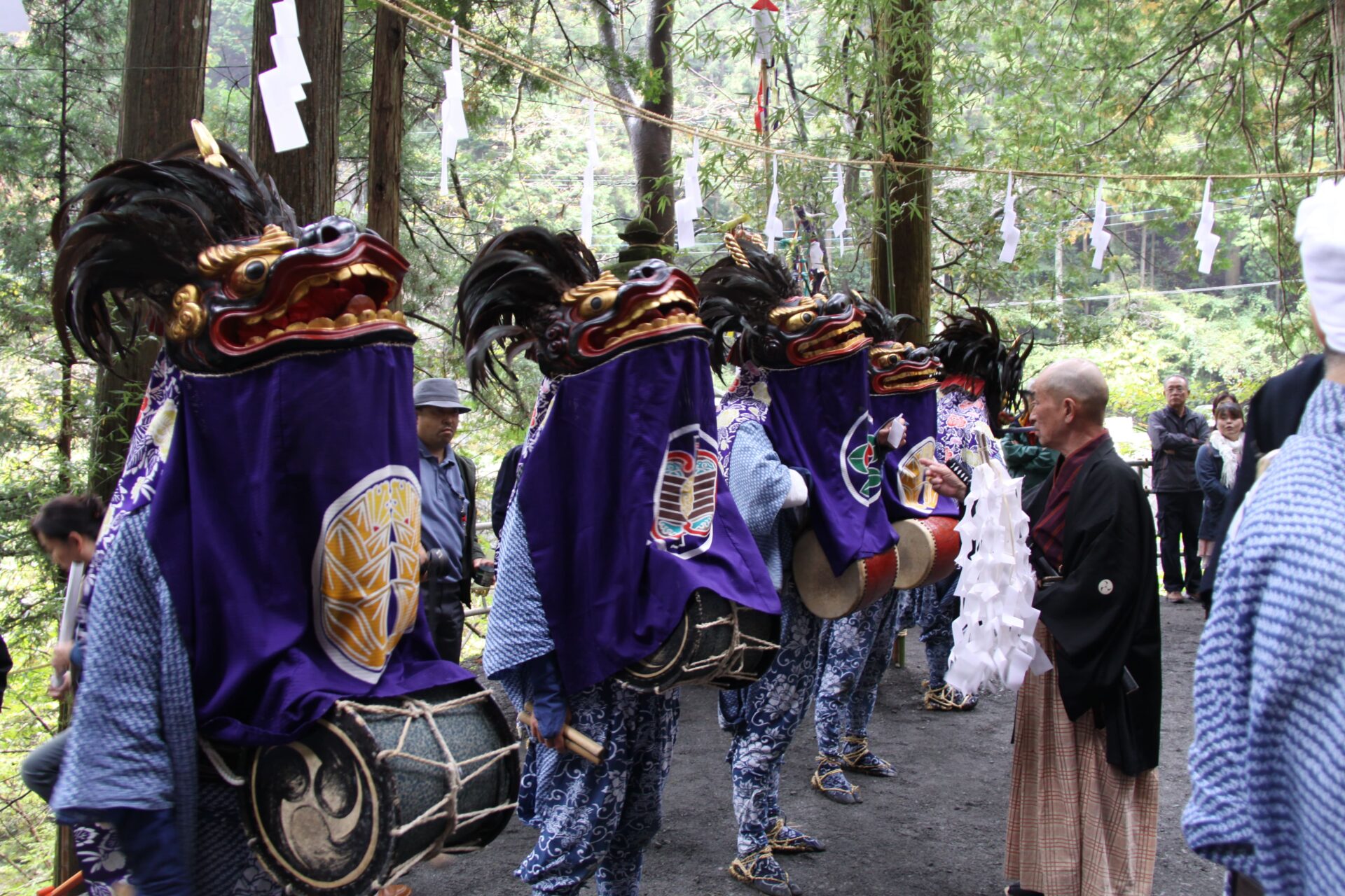 浦山の大日様の縁日に舞われる勇壮な舞いが魅力の獅子舞です。