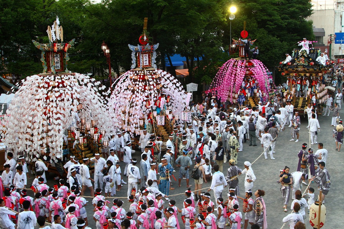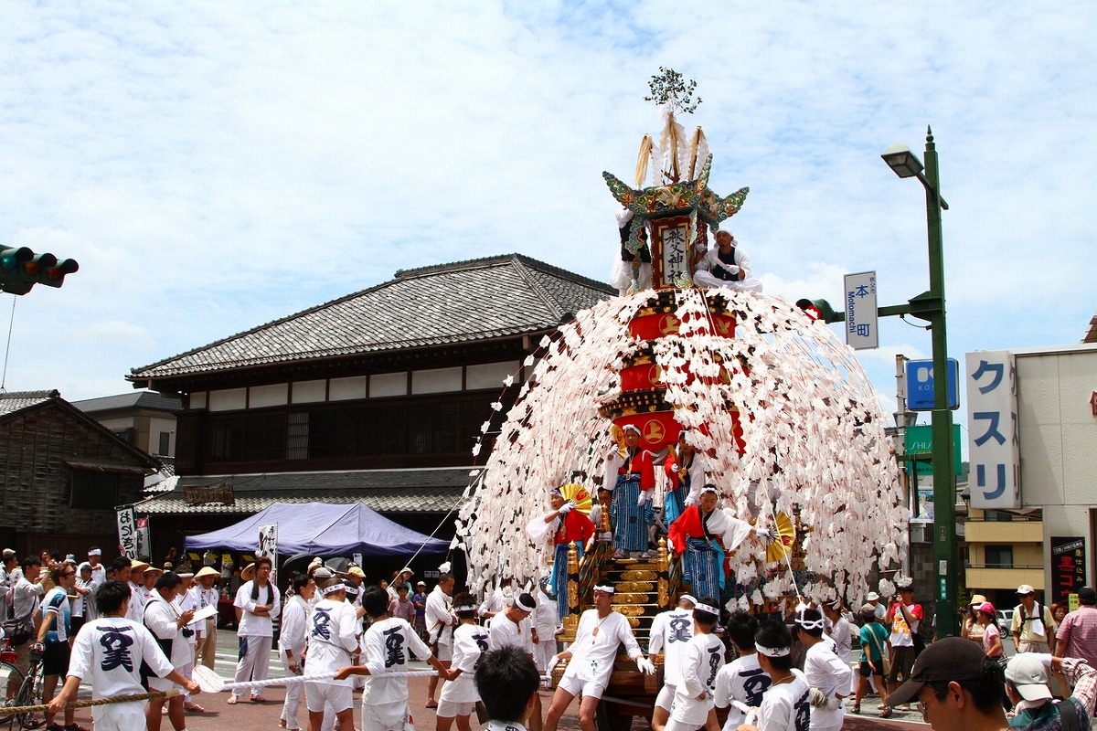 冬の秩父夜祭と対になる祭りといわれ、「夜祭」に対して「昼祭り」、「冬」に対して「夏」、「大人」に対して「子ども」という対比が特徴のお祭りです。祭りの主役となる笠鉾・屋台の囃子手や、花笠をつけた拍子木を子どもたちが務める姿はとても愛らしく、まさに子どもが中心となって盛り上げる夏祭りです。