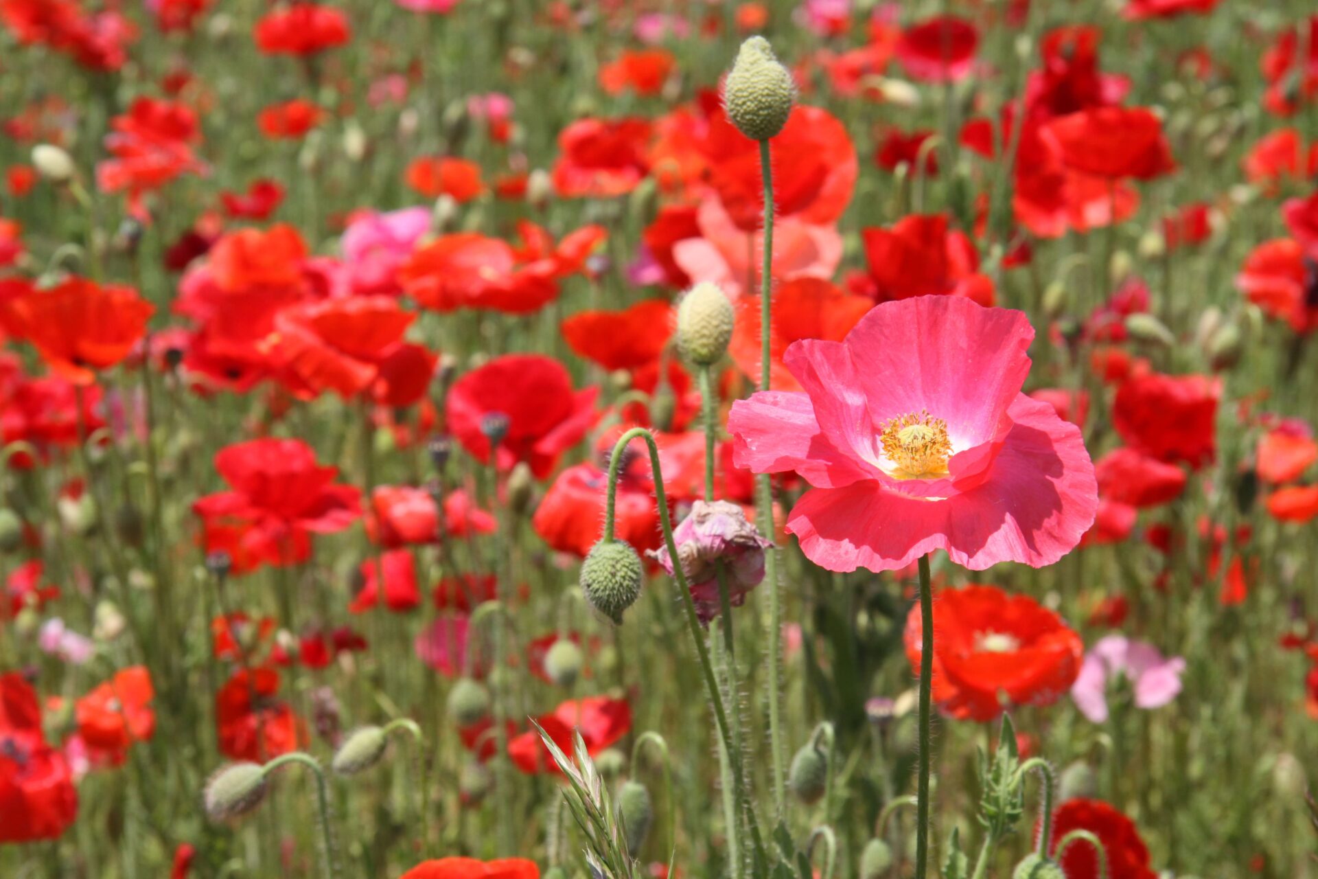 標高500メートル、面積5.0ヘクタールの広大な敷地に約1,500万本のシャレーポピーが草原を彩り、壮大で真っ赤なポピーが皆さんをお迎えします。