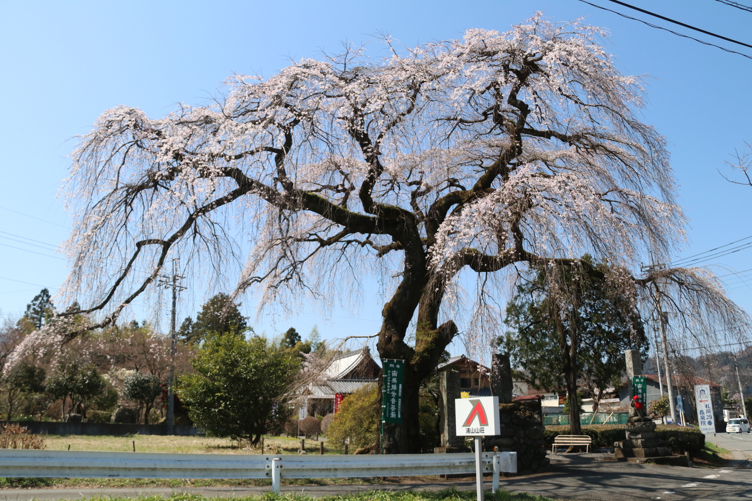 秩父札所29番寺の山門に古木のしだれ桜があります。